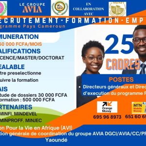 50 Cadres dont nous planifions la formation de la première vague soit : 25 Cadres supérieurs, pour le pilotage des Directions Générales et des Directions d’exécution du PPC au Cameroun,…